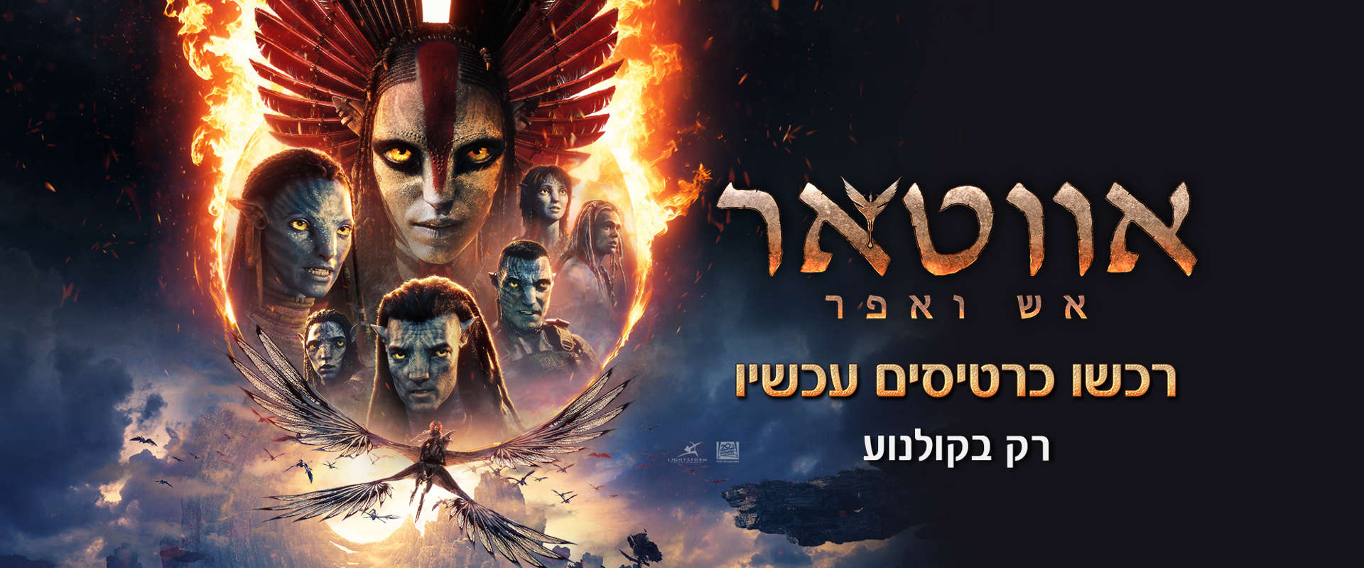 סדרת ה”אווטאר” המצליחה בעולם שעשתה מהפכה בעולם תלת המימד חוזרת בסרט שלישי ומרגש.ג’יימס קמרון מחזיר את הקהל לפנדורה בהרפתקה סוחפת חדשה עם ג’ייק סאלי, נחת לשעבר שהפך למנהיג נאווי, הלוחמת נאווית נייטירי ומשפחת סאלי. במאי זוכה האוסקר: ג'יימס קמרוןבכיכובם של: סם וורת’ינגטון, זואי סלנדה (זוכת האוסקר), סיגורני ויבר, סטיבן לאנג וקייט וינסלט.**הסרט אווטאר: אש ואפר מכיל מספר רצפים עם אורות מהבהבים שעשויים להשפיע על בעלי אפילפסיה רגישה לאור או בעלי כל רגישות אחרת לאור****לתשומת לבכם: במהלך הסרט תתקיים הפסקה**