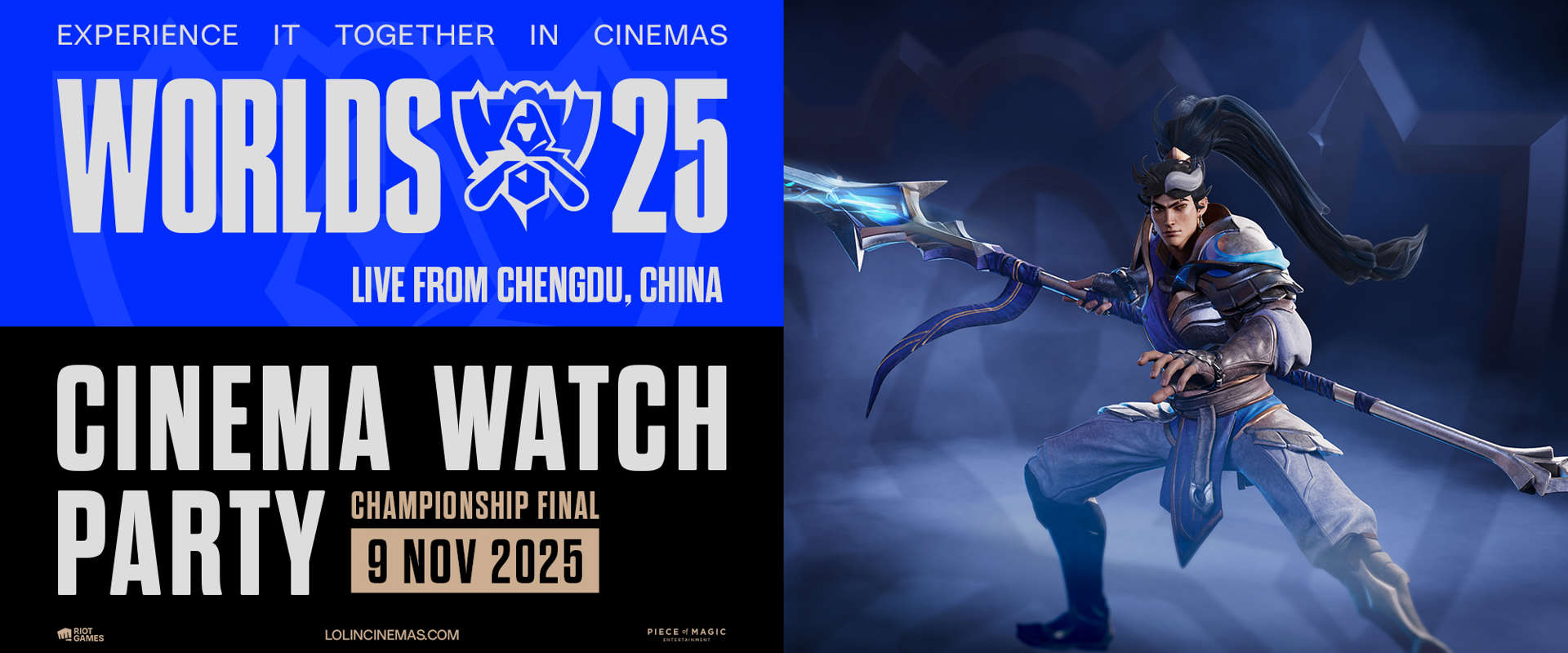 League of Legends Worlds25 – בלייב על המסך הגדול! הקרב הגדול של השנה חוזר – והפעם אנחנו רואים את זה בלייב מהעיר צ'נגדו שבסין, על מסך ענק ועם האווירה הכי מחשמלת שיש!17 קבוצות מהטופ העולמי נלחמות על התואר הנחשק – אלוף העולם של League of Legends!תתכוננו לאירוע שובר גבולות עם מהלכים מדהימים, טקטיקות מבריקות, ואלופים שמגיעים לשיאם בדיוק ברגע האמת.The 2025 League of Legends World Championship Final is coming to cinemas! 17 teams from around the globe compete for their chance to be crowned the World Champion.Get ready for an epic event with teams pushing game boundaries, breathtaking plays, and champions played at their peak.Experience the intensity and excitement on the big screen, surrounded by fellow fans.